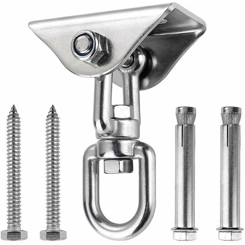 DESIGN DI ROTAZIONE A 360° Gancio di attacco a rotazione libera a 360° con fibbia a strappo facile da aprire. Design innovativo e brevettato. ALTA QUALITÀ, ANTI-CORROSIONE Anelli in acciaio inossidabile 304 realizzati con materie prime di alta qualità. Nessuna ruggine, resistenza alla corrosione, elevata durezza. SUR & I ganci per altalene di grado commerciale per impieghi gravosi sono progettati per l'uso da parte di bambini e adulti e sono progettati per l'uso domestico con un carico nominale di 500 kg, sono sicuri. FACILE DA INSTALLARE Abbiamo preforato due fori per l'avvitamento su travetti in legno o cemento. Inclusi 2 tasselli per calcestruzzo e 2 viti esagonali. Bulloni di espansione per applicazioni in calcestruzzo preforati che si installano in pochi minuti. MULTIFUNZIONE Miglior utilizzo come gancio da parete per allenatore di imbracatura, allenatore di imbracatura, sacco da boxe, palestra, yoga, altalena indoor o outdoor.