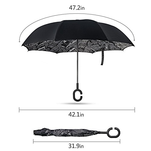 Innovativo Reverse Umbrella, Double Layer invertito Ombrello, Mysj creativi Auto Reverse ombrello diritto impermeabile ed auto Standing Inside Out compatto da viaggio ombrello con manico "C" (Giornali nero)