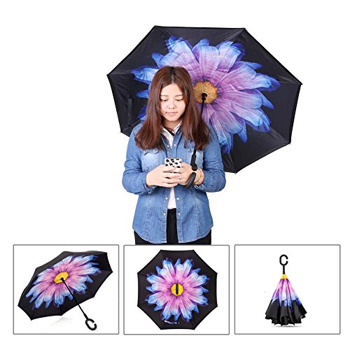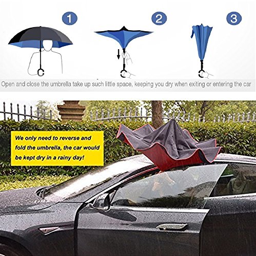 Innovativo Reverse Umbrella, Double Layer invertito Ombrello,Qile creativi Auto Reverse ombrello diritto impermeabile ed auto Standing Inside Out compatto da viaggio ombrello con manico "C" (C-3)