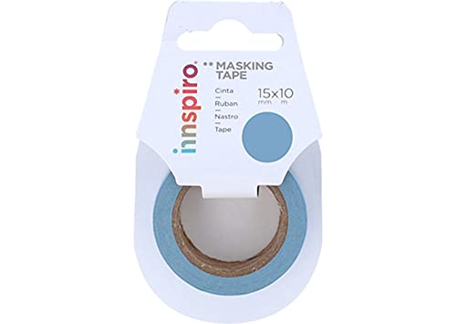 INNSPIRO Nastro da masking tape Washi azzurro 15 mm x 10 m. Serie liscia di base