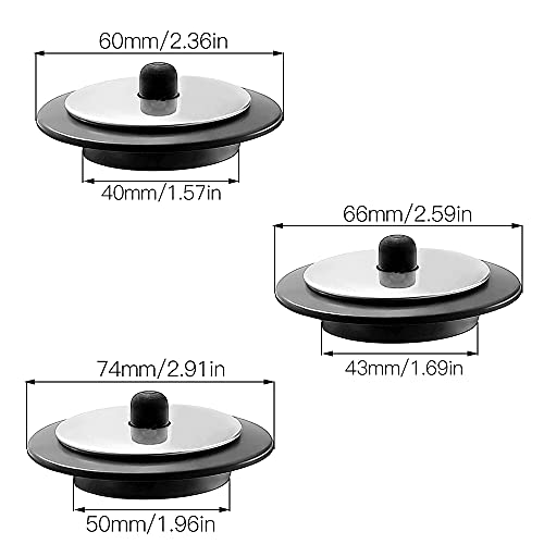 【Dimensione Universale】Questo set di tappi di scarico comprende 3 diverse dimensioni: 40mm (1,57 pollici), 43mm (1,69 pollici), 50mm (1,97 pollici), adatto alla maggior parte degli scarichi standard.