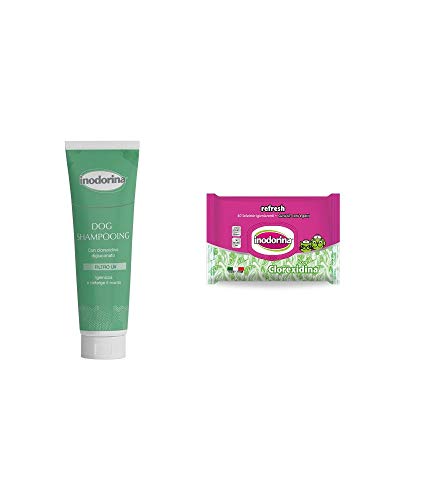 Inodorina Shampoo per Cani 250ml - Clorexidina Piu salviette 40 pz igienizzanti disinfettanti clorexidina per Cani e Cuccioli