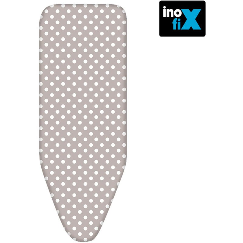Copertura ferro power vap dots 140x55cm. inofix. copertura per asse da stiro. speciale per centri da stiro a vapore. 100% cotone con foglio di alluminio, schiuma+panno. sistema di fissaggio con cordini e clip di fissaggio.