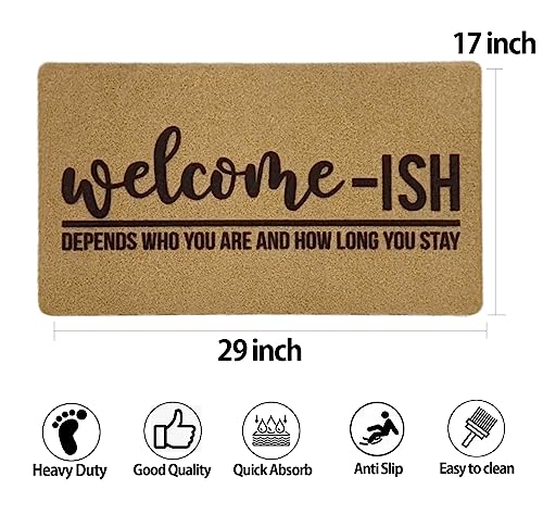INOGIH Zerbino benvenuto in fibra di cocco antiscivolo tappetino di divertente-citazione per ingresso interni ed esterni, 43 x 75 cm - Welcome Ish Depends on Who You Are And How Long You Stay