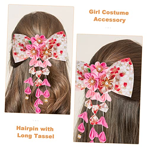 INOOMP Stile Giapponese Tornante Clip Di Sposa Bowknot Forma Tornante Costume Della Ragazza Accessorio Bambini Tiara Barrette Con Nappa Clip Di Bastoncini Di