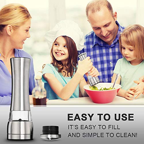 ❤【Splendidamente Realizzato】Il design del macinapepe è molto elegante e bello, con una superficie spazzolata e una finitura lucida. Questa elegante smerigliatrice di sale da 8,5 pollici / 215 mm con una scatola di colore è la scelta perfetta per la cucina o una sostituzione per quella vecchia.