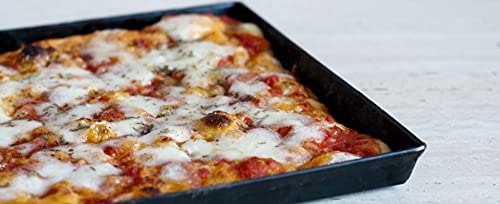 Teglia in ferro blu - materiale professionale ideale per la cottura di pizze e focacce.