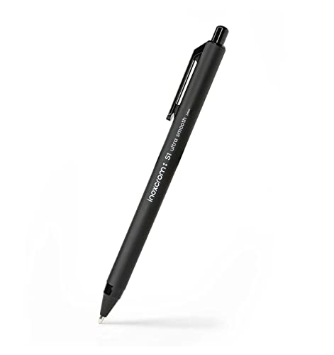 Inoxcrom: S1 - Penna a sfera retrattile ultra-scorrevole e piacevole al tatto, punta media (1 mm), confezione da 5, inchiostro nero