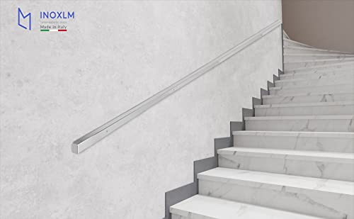 INOXLM Corrimano in acciaio inox AISI 304 con finitura"satinata" 30x30 mm| Corrimano in acciaio inox made in Italy | Corrimano fai da te | Corrimano ideale per uso interno ed esterno (3100 mm)