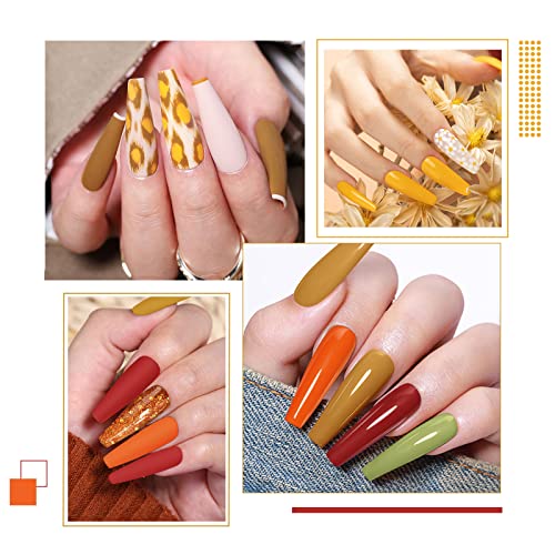 INPING Smalto Semipermante Per Unghie Arancione Giallo, 6 Colori Autunnale Raccolta Festival Set Di Smalti UV Gel, Verde Giallo Arancione Glitter Gel Halloween/Thanksgiving 8ML