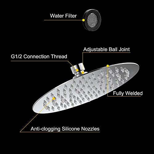 Inputer Soffione Doccia Grande a Pioggia 25CM*25CM Soffione Doccia Alta Pressione Rotondo con getto superiore Soffione Doccia Anticalcare Potente Design ultrasottile in Acciaio Inox 304