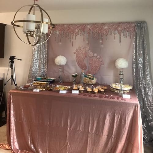 INRUI Panno di Poliestere Oro Rosa Bambino Doccia Fotografia Sfondo Glitter Shimmer Piccoli Piedi Ragazze Dolce Principessa Rosa Baby Shower Party Forniture Decorazione