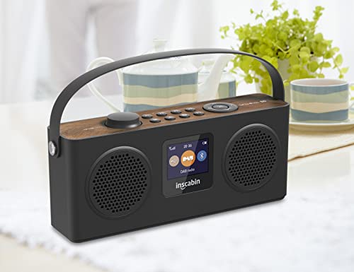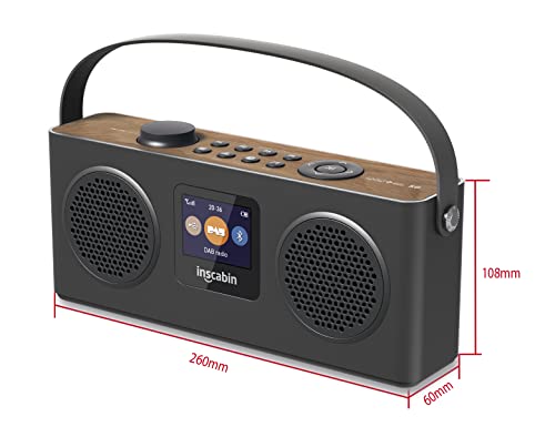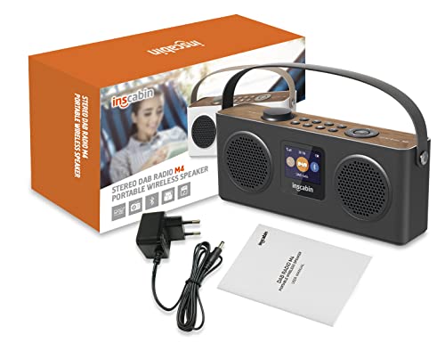 Inscabin M4 Portatile DAB/DAB+Radio Digitale FM Portatile Radio/Bluetooth/Stereo Suono/Doppio Altoparlante/Doppia Sveglia/Batteria Ricaricabile (Nero)