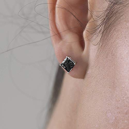 InSCINTILLE Orecchini Punto Luce in Argento Rodiato 925 Brillantino Quadrato di Zirconia Cubica (Diametro: 7 mm, Nero)