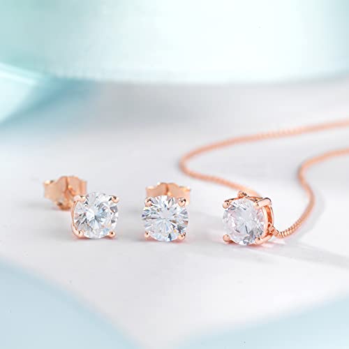 InSCINTILLE Punto Luce Collana Donna Argento 925 con Pietra di Zirconia Cubica (Diametro: 5 mm, Catena Oro Rosa - Pietra Bianca)