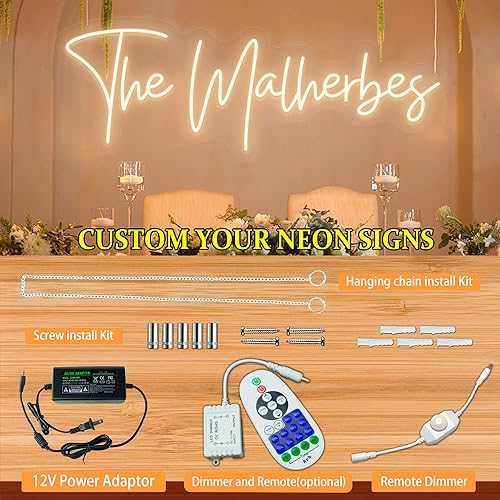 Facile da Installare -- La luce al neon a LED viene fornita con fori preforati, adattatore, catena e viti di fissaggio. Le insegne al neon personalizzate hanno un foro dietro la lampada. Puoi appenderlo rapidamente al muro, montarlo al muro o posizionarlo in qualsiasi luogo piatto.