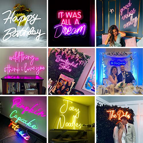 Decorazione domestica e uso commerciale - L'insegna al neon personalizzata è molto adatta per soggiorno, camera da letto, cortile, matrimonio, festa di compleanno, bar, ristorante, caffetteria, negozio di tatuaggi, decorazione per parrucchiere, l'insegna al neon personalizzata può risaltare bene con l'ambiente e rendi unico il tuo negozio. Le luci al neon possono aggiungere atmosfera ad Halloween, Natale e altri festival.