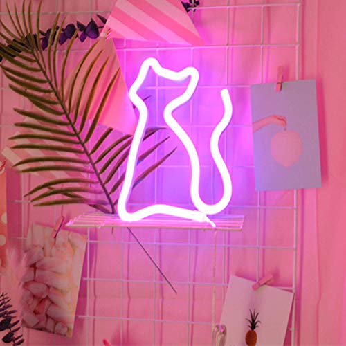 Insegne al Neon Decorative a Forma di Gatto Rosa, Segnale al Neon a LED, Lampada Rosa Chiaro USB/Batteria Cartello Notturno Carino per Cameretta Kids Room Bar Party Natale Decor Regalo
