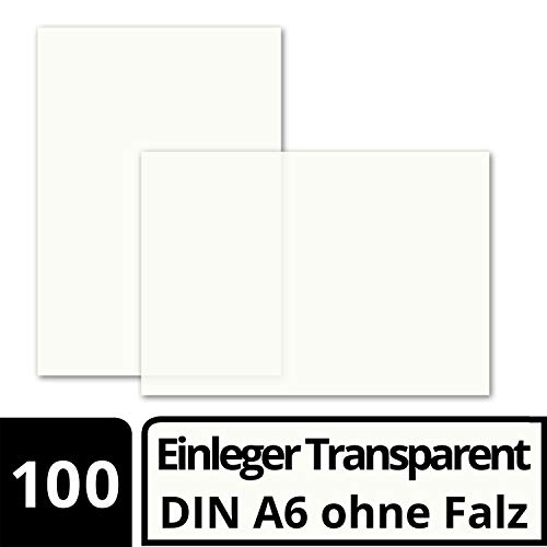 Inserimento della carta, trasparente Bianco, DIN A6 103 X 146 mm senza inserto Falzung (Semplice)//Carta di alta qualità con 92 G/M²//con regalo dalla collezione colori vivaci. A6 bianco trasparente