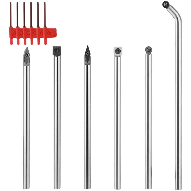 Gli utensili di tornitura multifunzione hanno una buona tenacità e durezza con vari tipi in grado di soddisfare le diverse esigenze. Adatto a una varietà di ambienti di elaborazione, anche in pessime condizioni. Caratteristiche: Gli utensili sono realizzati professionalmente con acciaio di buona qualità con processo di tempra, per rendere gli utensili molto resistenti. Le frese sono realizzate in carburo di altissima qualità per tornitura del legno. Facile da usare, buona durata. Facile da installare. Può funzionare con la mano, strumento di falegnameria conveniente. È possibile ruotare gli inserti quando un lato degli inserti è usurato. È possibile sostituire i nuovi inserti quando tutti i lati degli inserti sono usurati, è possibile acquistare facilmente gli inserti sostituiti. È possibile acquistare un manico in lega di alluminio e impostare insieme lo strumento di tornitura, è leggero e resistente. Specifiche tecniche: Tipo: 7 (opzionale) 1: Smussatura 28mm / 1.10in Lunghezza