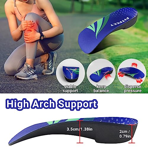 Solette di supporto ad arco alto alleviano il dolore ai piedi: un paio di inserti ortopedici di lunghezza 3/4, caratteristiche con arco alto fino a 35 mm e materiale EVA solido, che assorbono l'impatto di ogni passo durante l'esercizio o la camminata e distribuiscono uniformemente la pressione del piede e riduce la fatica. Pertanto, le solette di supporto per arco FitFeet sono adatte a coloro che soffrono di dolori comuni ai piedi piatti, fascite plantare, pronazione eccessiva, arco alto e arco caduto, ecc.