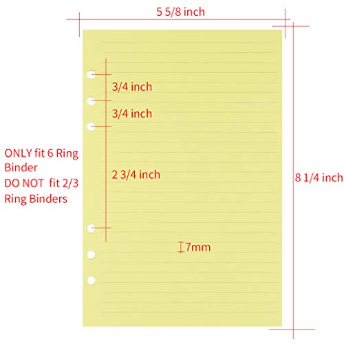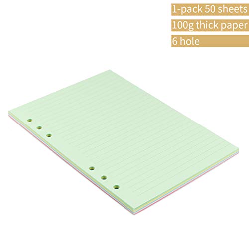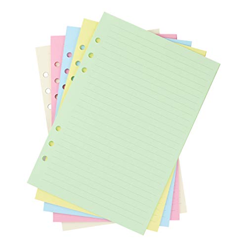 Inserti di ricarica colorati A5 fori a righe per raccoglitori di dimensioni personali, fogli di carta sfusa a 5 colori, 50 fogli/100 pagine, a righe (8 1/4" x 5 5/8") A5 5 colori a righe.