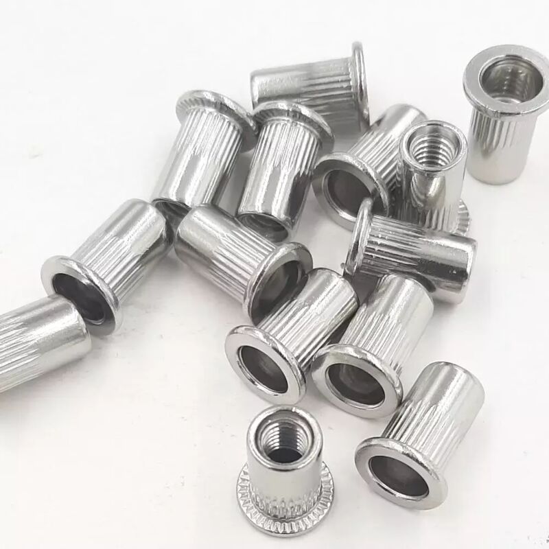 Inserto inox AISI 304 filettato M6 con corpo zigrinato a testa cilindrica. Diametro esterno (D): 8,9 mm Diametro testa (B): 11 mm Spessore testa (S): 1,5 mm Diametro foratura: 9 mm Spessore serrabile: 0,5-3,5 mm Lunghezza totale inserto (L): 15,5 mm Lunghezza sottolamiera dopo serraggio (L1): 8,3-8,8 mm