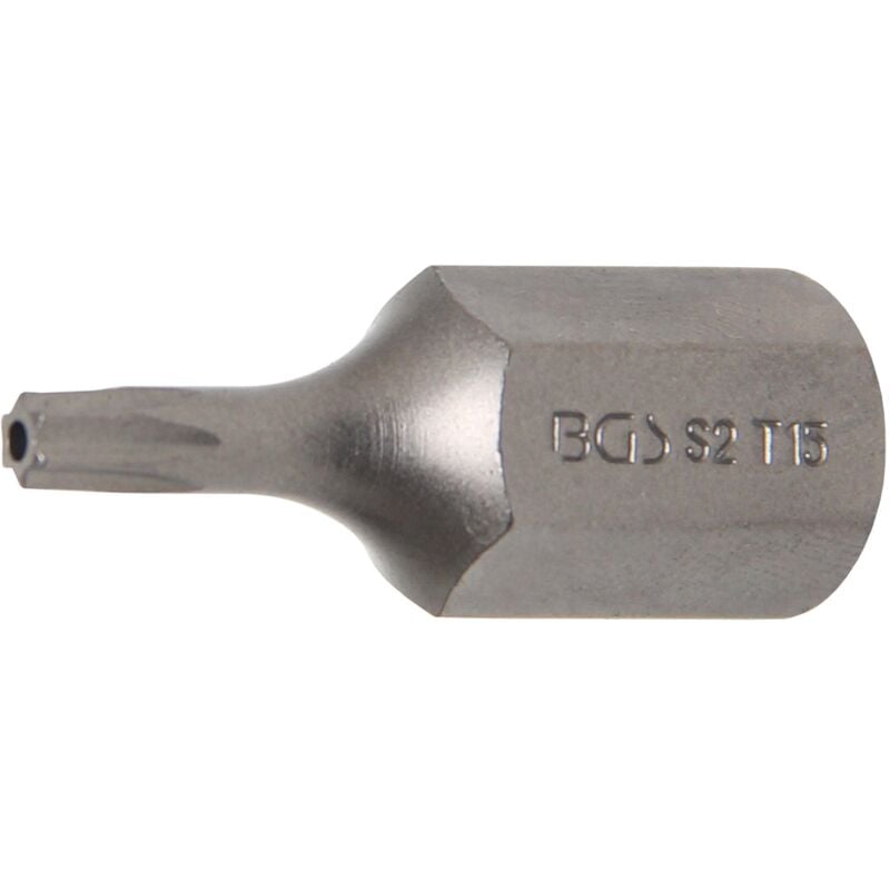 BGS technic Inserto | lunghezza 30 mm | attacco esagono esterno 10 mm (3/8) | profilo a T (per Torx) con alesatura T15