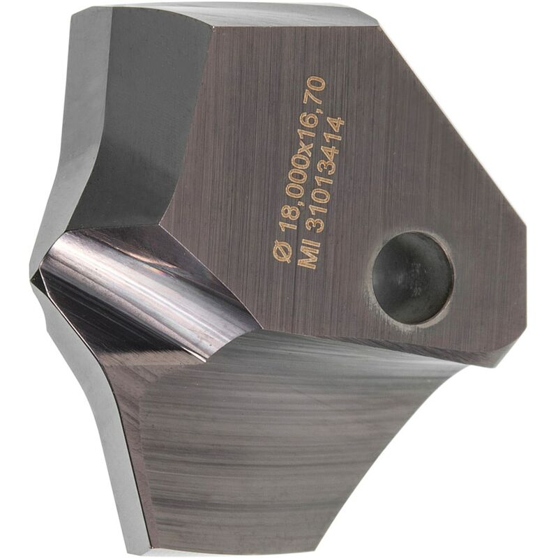DescrizioneEsecuzione:Inserto rettificato a prisma per posizionamento preciso e sede stabile.Precisione di concentricità radiale di montaggio ≤ 20 µm. Per fori di precisione fino a IT9.Affilatura speciale a piramide, foratura ottimale - anche in condizioni di instabilità e in caso di elevate sporgenze degli utensili.Per esempio: lavorazione di lamiere e supporti in acciaio. Adatta anche per fori a pacchetto.Nota:Profondità di foratura senza passaggio interno per LR fino a massimo 1×D.I dati di taglio valgono per l'elemento base 5×D.Impostare i fori pilota esclusivamente con l'inserto per taglio dello stesso tipo.Dati tecnici ⌀ D 28 mm Tipo HB3040 Materiale da taglio HM Angolo di affilatura 120 ° Per elemento base ⌀ D 28 mm Avanzamento f in acciaio < 750 N/mm2 0,35 mm/U Utilizzo foro Foratura in pacchetti semi-standard sì Numero taglienti Z 2 Numero di sostituzioni/taglienti 1 Rivestimento TiAlN Tipo di prodotto Inserto da taglio per foratura Codice articolo 231645 28 EAN / GTIN