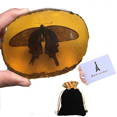 Insetto fossile ambra con sacchetto regalo e buono regalo , Campione di qualità museale , Insetto naturale ambra artificiale (farfalla)