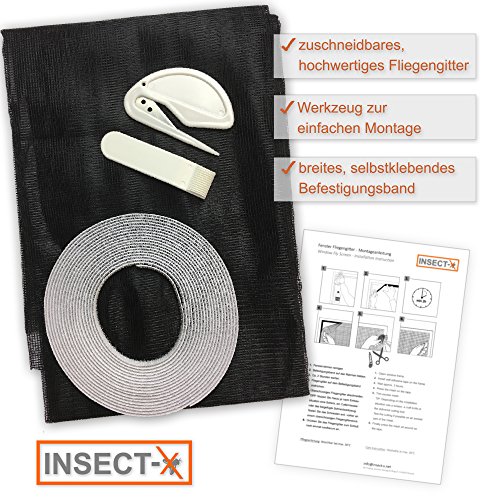 Insetto della X zanzariera zanzariera per finestre, Rete per la protezione dagli insetti come mosche e zanzare 130 x 150 cm, protezione dagli insetti zanzariera antizanzare, nero