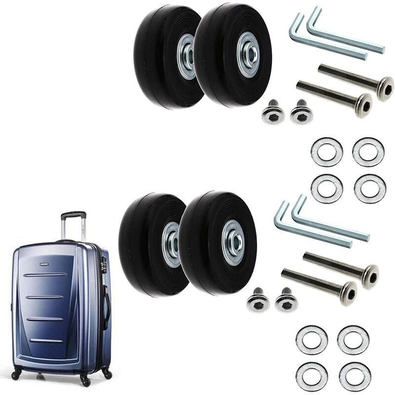 È fatto di gomma e può reggere molto peso. Non è facile da usurare. È molto flessibile. Indossa, Silenzioso, portapacchi, doppio cuscinetto, tubo girevole. Lo scorrimento è facile, senza sforzo e funziona meglio delle ruote per bagagli originali. Contenuto della confezione: 4*ruote (inclusi strumenti di installazione)
