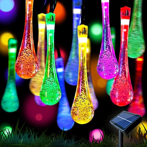 【Catena Luminosa Esterno Solare Multicolor】50 LED a goccia di cristallo di alta qualità e cavo da 9.5 m, lunghezza sufficiente per decorare la tua casa e il tuo giardino. 100 lucine di cristallo emettono una luce piacevole e bella e creano un'atmosfera romantica, meravigliosa e fantastica nel tuo giardino, patio, prato, cancello, ecc.