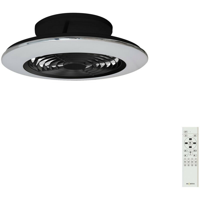 Mantra Alisio Mini Plafoniera LED dimmerabile e ventola reversibile CC da 30 W, nera, telecomando | Finitura: nero, bianco | Grado di protezione IP: IP20 | Altezza: 16,5 cm | Diametro: 52,5 cm | Tipo di lampada: LED integrato | N. di lampade: 1 | Dimmerabile: Sì - Telecomando | Kelvin: 2700 - 5000K sintonizzabile bianco | Lumen: 4900lm | Peso: 3,65 kg | Potenza (max): ventola - 100 W, lampada - 30 W | Commutato: Sì - Telecomando