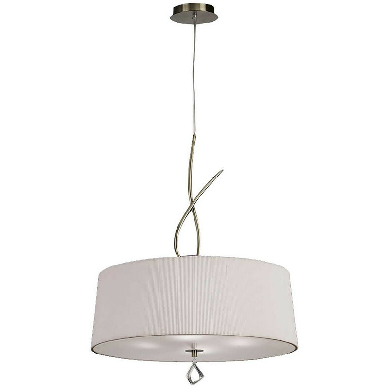 Inspired Mantra Mara Sospensione 4 Luci E27 Rotonda In Ottone Anticato Con Paralume Bianco Avorio | Finitura: ottone antico | Classificazione IP: IP20 | Altezza minima: 75 cm | Altezza massima: 150 cm | Diametro: 55 cm | Tipo di lampada: E27 | N. di lampade: 4 | Lampadina inclusa: No | Dimmerabile: Sì - Sono necessarie lampade e dimmer adatti | Peso: 4,2 kg | Potenza (massima): 20W