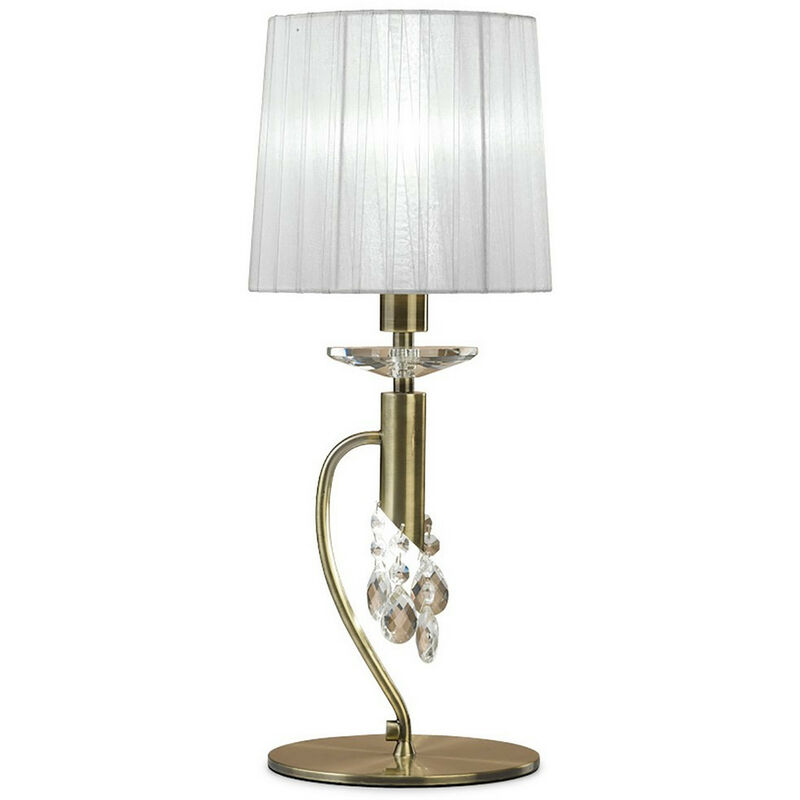 Inspired Mantra Tiffany Lampada da tavolo 1+1 luce E14+G9, ottone anticato con paralume bianco e cristallo trasparente | Finitura: ottone antico | Materiale: cristallo trasparente K9 | Classificazione IP: IP20 | Altezza: 49 cm | Diametro: 20 cm | Tipo di lampada: E14 | N. di lampade: 1 | Lampadina inclusa: No | Dimmerabile: Sì - Sono necessarie lampade e dimmer adatti | Peso: 2,3 kg | Potenza (massima): 15 W | Switched: Sì - Inline Switch