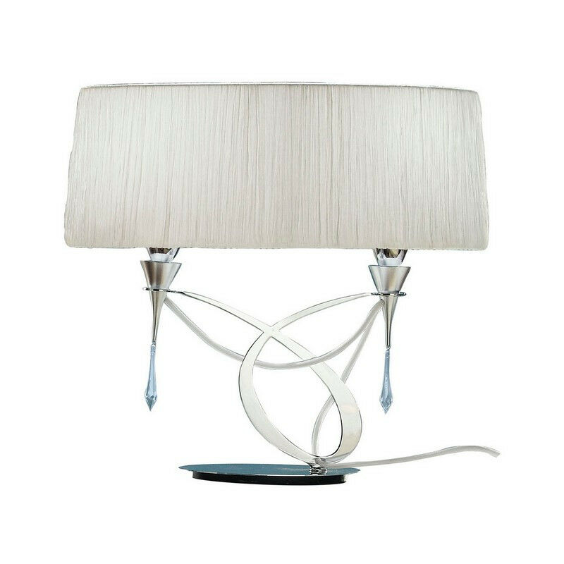 Inspired Mantra Fusion Lucca Lampada da tavolo Lucca 2 luci E27 piccola, cromo lucido con paralume bianco e cristallo trasparente | Finitura: cromo lucido | Materiale: cristallo trasparente K9 | Classificazione IP: IP20 | Altezza: 43cm | Lunghezza: 45 cm | Larghezza: 20 cm | Tipo di lampada: E27 | N. di lampade: 2 | Lampadina inclusa: No | Dimmerabile: Sì - Sono necessarie lampade e dimmer adatti | Peso: 2,3 kg | Potenza (massima): 60 W | Switched: Sì - Inline Switch