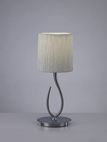 Inspired Mantra - Lua - Lampada da Tavolo 1 Luce E27, Piccola Nichel Satinato con Paralume Bianco