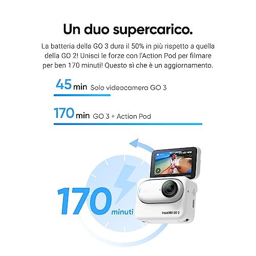 Action Pod multifunzionale: 170 minuti di riprese, touchscreen orientabile, telecomando e anteprima live, montaggio magnetico identico a quello della GO 3.