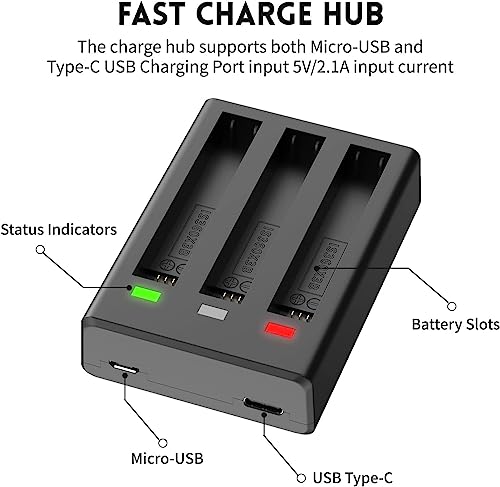 【 Insta 360 x3 accessori USB caricatore rapido 】 Adicop ricambio per la batteria Insta360 X3 dispone di una porta di tipo C e una porta micro USB che supportano una ricarica rapida. La luce rossa significa carica, verde significa carica completa. Può caricare 3 batterie contemporaneamente e in modo indipendente. Per una ricarica rapida, si prega di assicurarsi che l'alimentazione di ingresso sia 5 V 2,1 A;