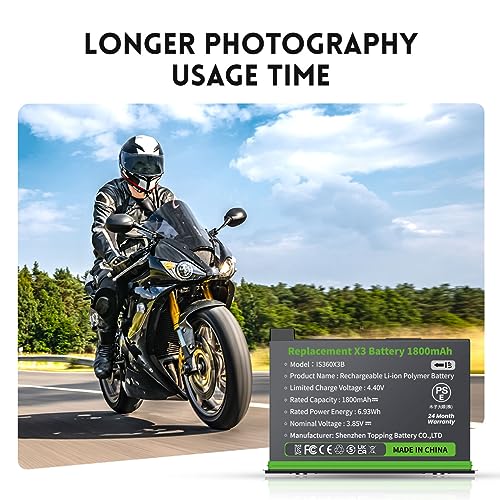 【Insta360 X3 Batteria con caricatore: 】compatibile con batteria ai polimeri di litio Insta 360 x3, 1800 mAh: limitata. Tensione di carica: 4,40 V;