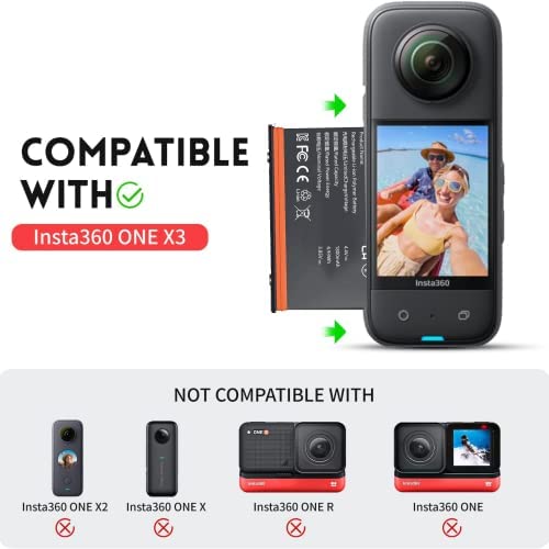 【Compatibile con insta 360 X3】 La batteria di ricambio è pienamente compatibile con Insta360 X3, 1800mAh batteria agli ioni di litio di alta qualità con celle di alta qualità, durevole e ricaricabile, fornisce prestazioni affidabili per il vostro insta 360 X3 e garantisce scatti perfetti senza preoccupazioni.