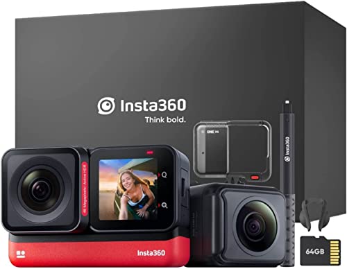 Insta360 ONE RS Twin Edition Kit Get-Set - Action Cam Impermeabile 4K 60fps & 5.7K con obiettivi intercambiabili, stabilizzazione, Foto 48MP, Active HDR, Editing AI