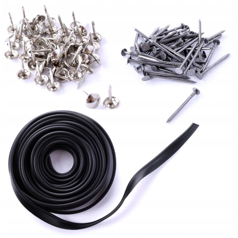 Kit di installazione per rivestimento porta KEDRA nero Il set include: Kedra nero 5 metri Perni per tappezzeria argento Chiodi per tappezzeria argento NOTE | I colori presentati devono essere considerati indicativi: potrebbero differire da quelli reali a causa delle diverse impostazioni del monitor e del processo di elaborazione delle foto. • Le dimensioni effettive potrebbero differire leggermente da quelle indicate nella descrizione. La tolleranza dell'errore può essere di +/- 2 cm