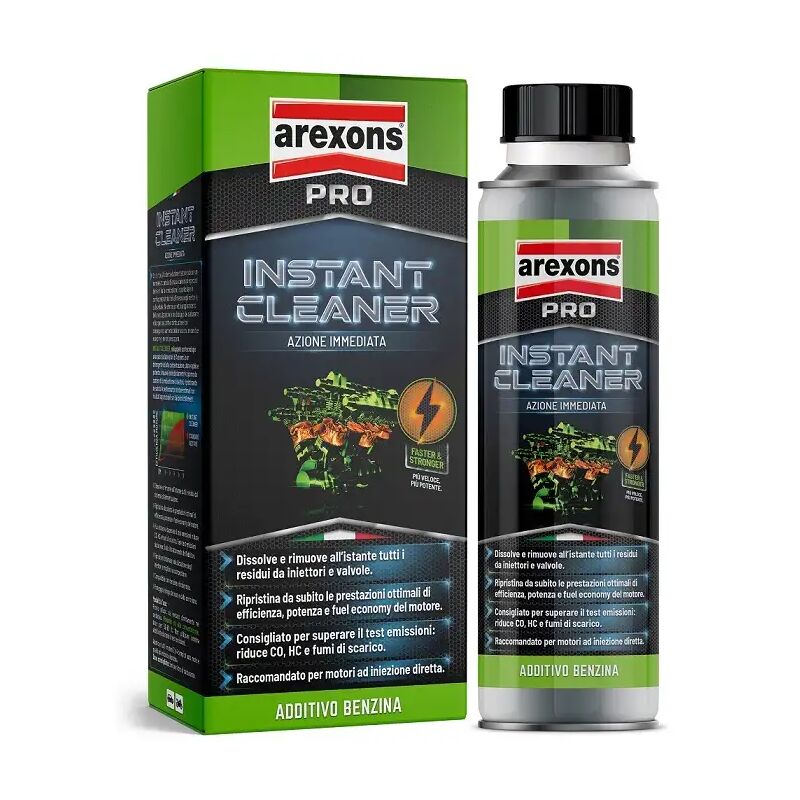Sviluppato grazie alle nuove tecnologie Arexons, un detergente, ad altissima concentrazione, ultra-rapido e potente: spazza via lo sporco dal sistema di alimentazione con effetto immediato. Dissolve e rimuove all'istante tutti i residui da iniettori e valvole. Ripristina da subito le prestazioni ottimali di efficienza, potenza e fuel economy del motore. Consigliato per superare i test emissioni: riduce CO, HC e fumi di scarico. Raccomandato per motori ad iniezioni diretta. Instant Cleaner Benzina Additivo 325ml Pulitore ultra concentrato raccomandato per motori ad iniezione.