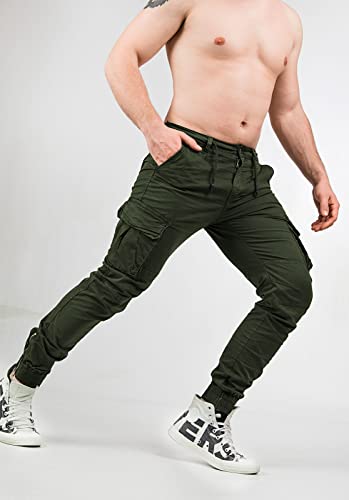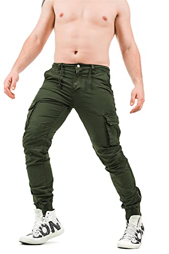 Instinct I Pantaloni Cargo Uomo Pantaloni Uomo con Tasche Laterali Pantaloni Uomo Cargo Uomo Pantalone Uomo Tasconato Pantaloni Multi Tasca Slim Fit 42, Verde ZK-661