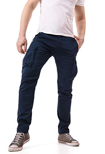 Instinct Pantaloni Cargo Uomo con Tasche Laterali Tasconi Zip Slim Fit W7 (46, Blu K303)