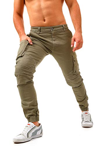 Instinct Pantaloni Cargo Uomo con Tasche Laterali Tasconi Zip Slim Fit W7 (44, Khaki K-276)