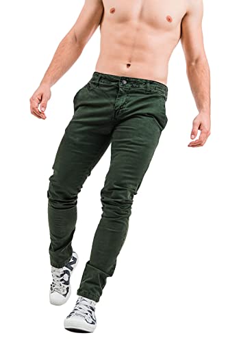 Pantaloni Uomo Chino Casual Elegante Slim Fit Basic Classico da Ufficio Tasca America in Cotone (50 Verde X 518)
