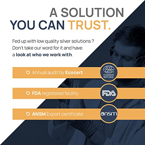 100% NATURALE CON SOLO 2 INGREDIENTI Il nostro argento colloidale per la pelle è composto solo da acqua e argento, senza additivi, sostanze chimiche o conservanti artificiali, garantendo così la massima sicurezza e purezza del prodotto.